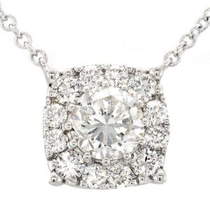 PENDANT CENTER ROUND BRILLIANT NATURAL DIAMOND .70ct. DIAMONDS .38ct.tw. 18K –