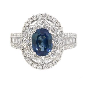 LOT 577 – RING OVAL SHAPE SAPPHIRE 1.78CT.TW DIAMONDS 1.64CT.TW 18K