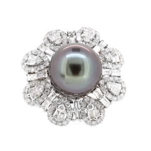 LOT 597 – RING SOUTH SEA PEARL 13.1mm (210) DIAMONDS 2.97CT.TW 18K