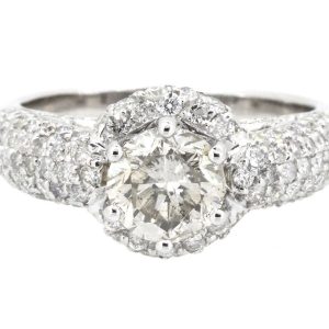 LOT 410 – RING – CENTER ROUND DIAMOND 1.24CT., DIAMONDS 1.19CT.TW 18K