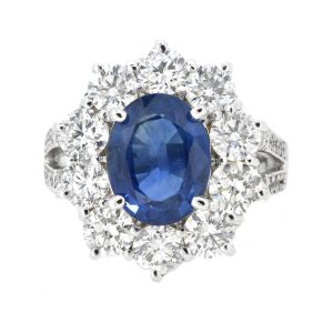 LOT 559 – RING OVAL SHAPE SAPPHIRE 3.34CT. DIAMONDS 2.63CT.TW 18K
