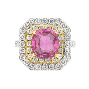 LOT 449 – RING – UNHEATED SAPPHIRE 3.80CT. (GIA CERT) DIAMONDS 2.29CT.TW 18K