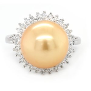 LOT 725 – RING CENTER NATURAL GOLDEN SOUTH SEA PERAL 12.49mm, DIAMONDS .66ct.tw 18K
