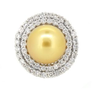 LOT 763 – RING NATURAL GOLDEN SOUTH SEA PEARL 13.93mm, DIAMONDS 2.19ct.tw. 18K