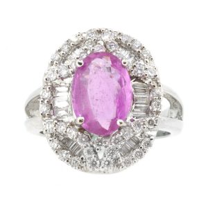 LOT 827 – RING OVAL SHAPE PINK SAPPHIRE 1.79CT. (GIA CERT) DIAMONDS 1.60CT.TW. 18K