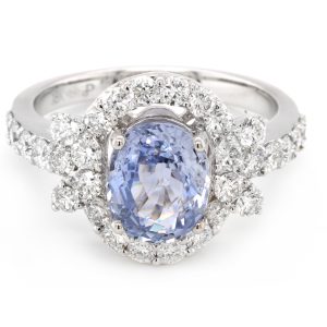 LOT 727 – RING OVAL SHAPE UNHEATED BLUE SAPPHIRE 1.79CT. (GIA CERT) DIAMONDS 1.23CT.TW. 18K