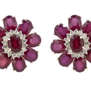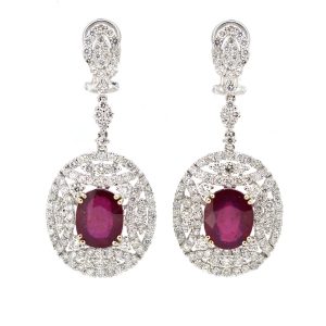LOT 777 – EARRINGS OVAL SHAPE RUBIES 7.60CT.TW. DIAMONDS 4.52CT.TW. 18K