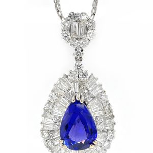 LOT 389 – NECKLACE – CENTER PEAR SHAPE VIOLET BLUE TANZANITE 5.12CT., DIAMONDS 7.33CT.TW 18K
