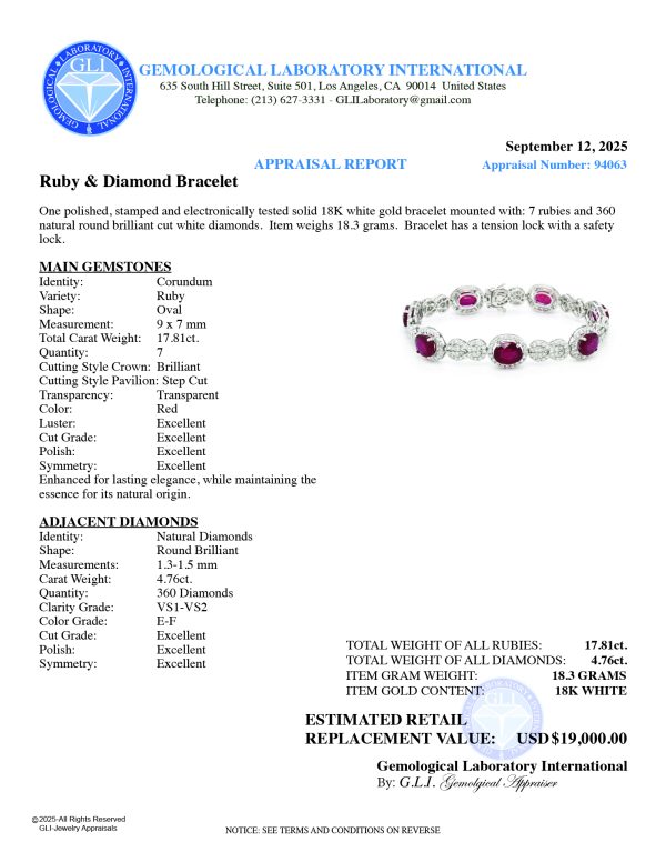 LOT 625 – BRACELET OVAL SHAPE RUBIES 17.81CT.TW. DIAMONDS 4.76CT.TW. 18K