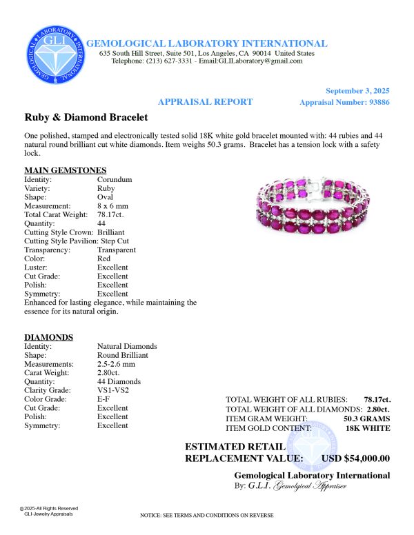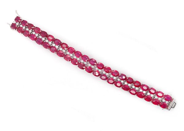 Bracelet (44) Oval Shape Rubies 78.17ct.tw Adjacent (44) Round Brilliant Natural Diamonds 2.80ct.tw