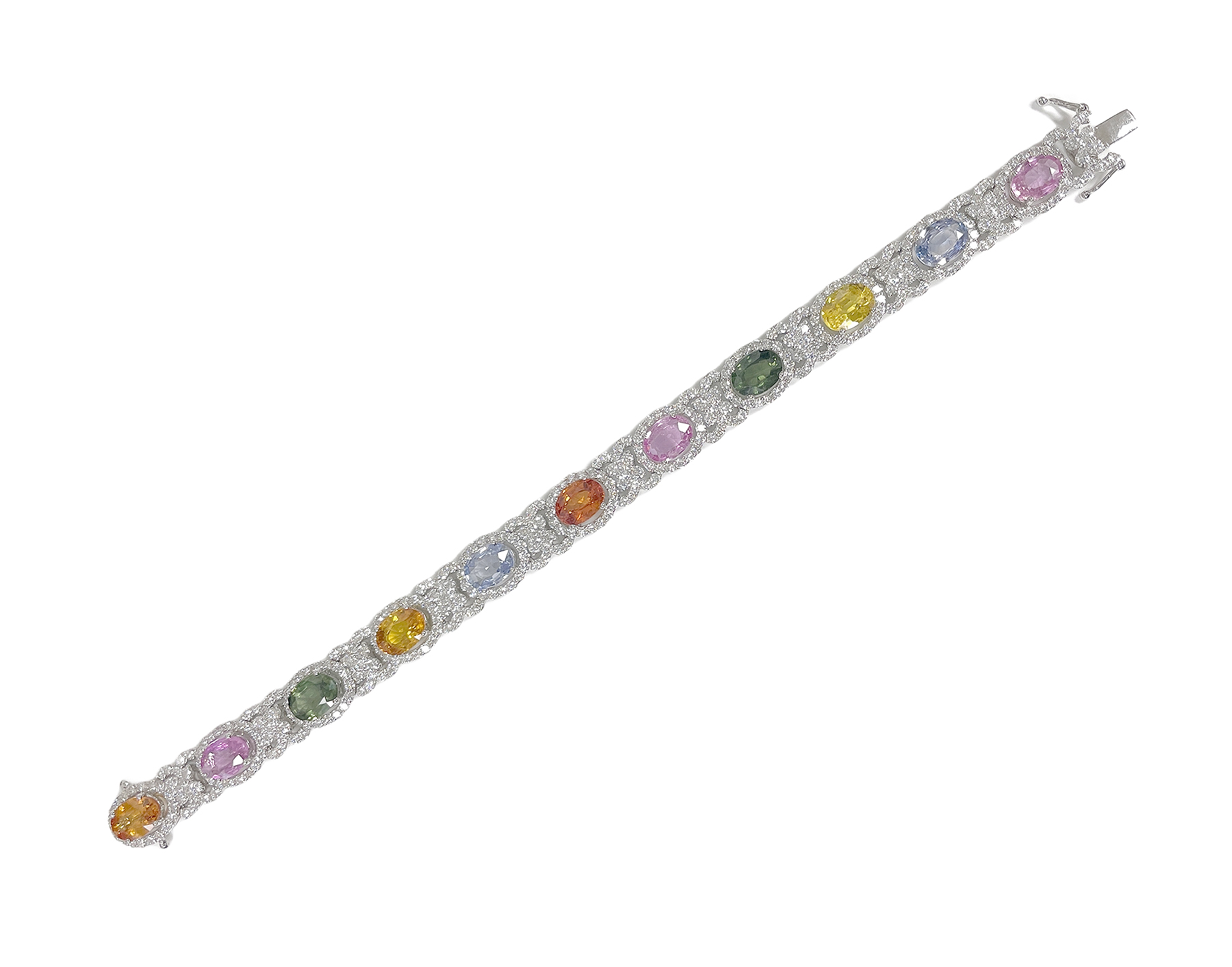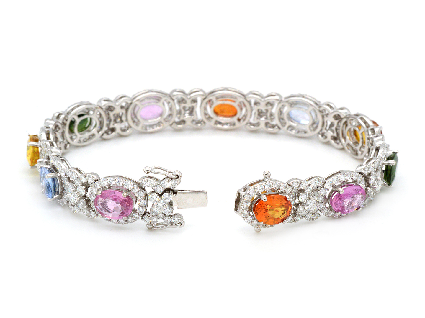 LOT 97 – BRACELET – OVAL SHAPE MULTI COLOR SAPPHIRES 32.15ct.tw. DIAMONDS 4.89ct.tw. 18K