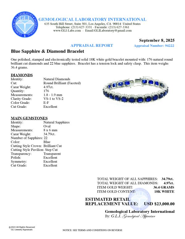 Bracelet (22) Oval Shape Sapphires 34.79ct.tw Adjacent (176) Round Brilliant Natural Diamonds 4.97ct.tw.