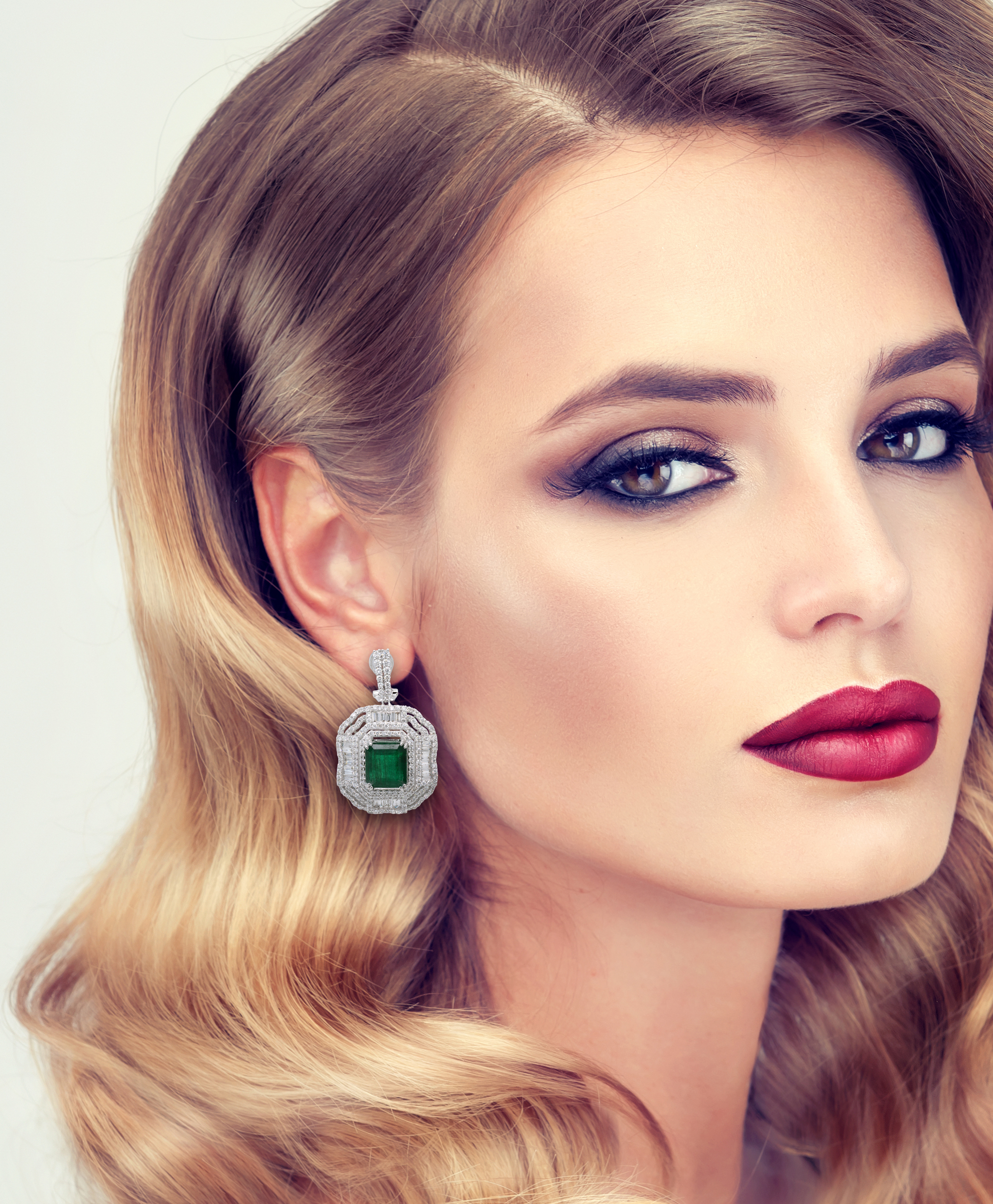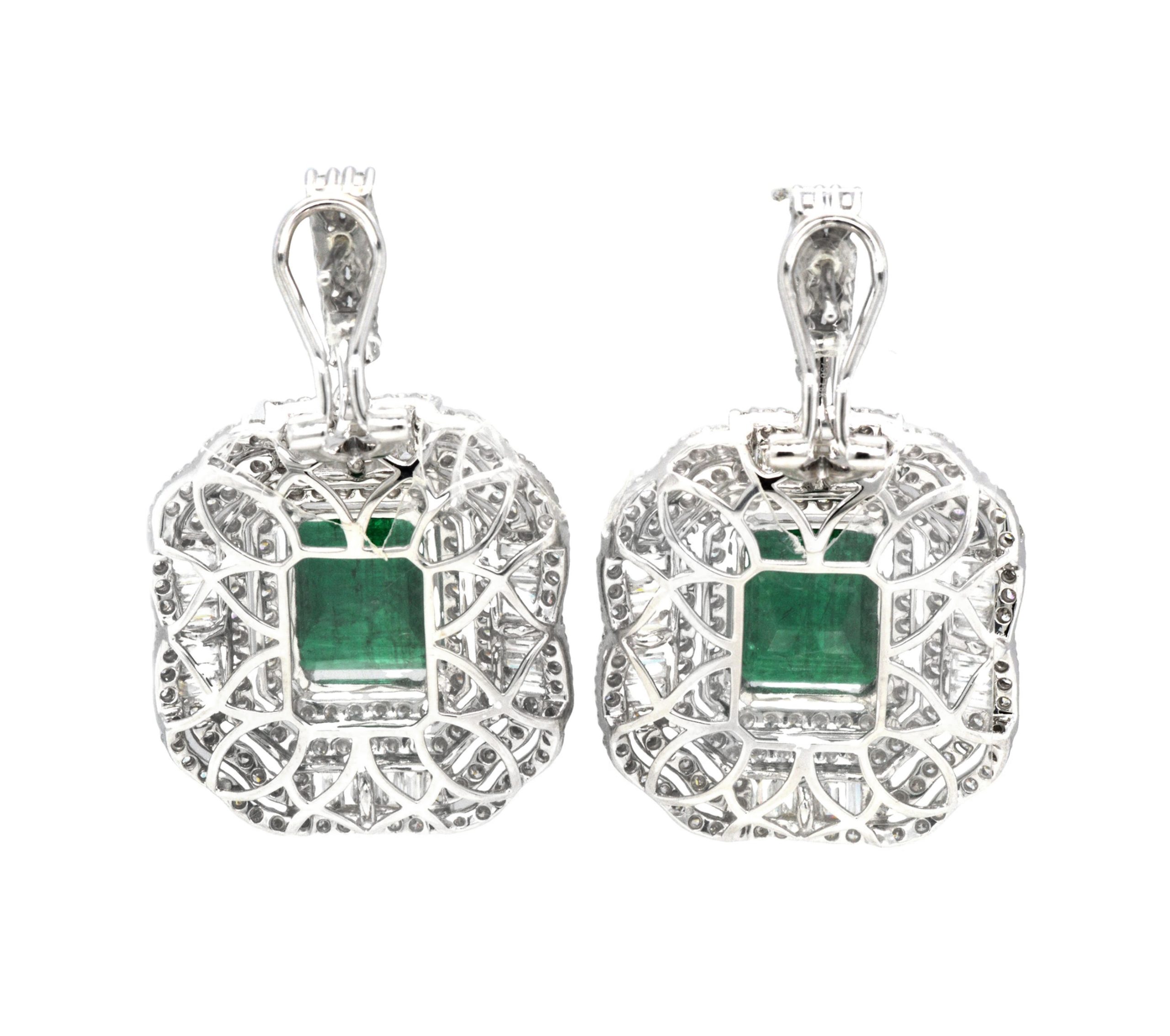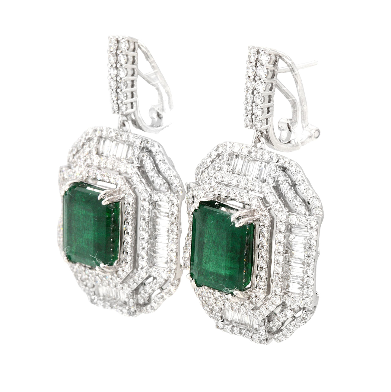 LOT 8 – EARRINGS (2) EMERALDS 13.53ct.tw. DIAMONDS 5.71ct.tw. 18K WHITE GOLD – 24.0 GRAMS