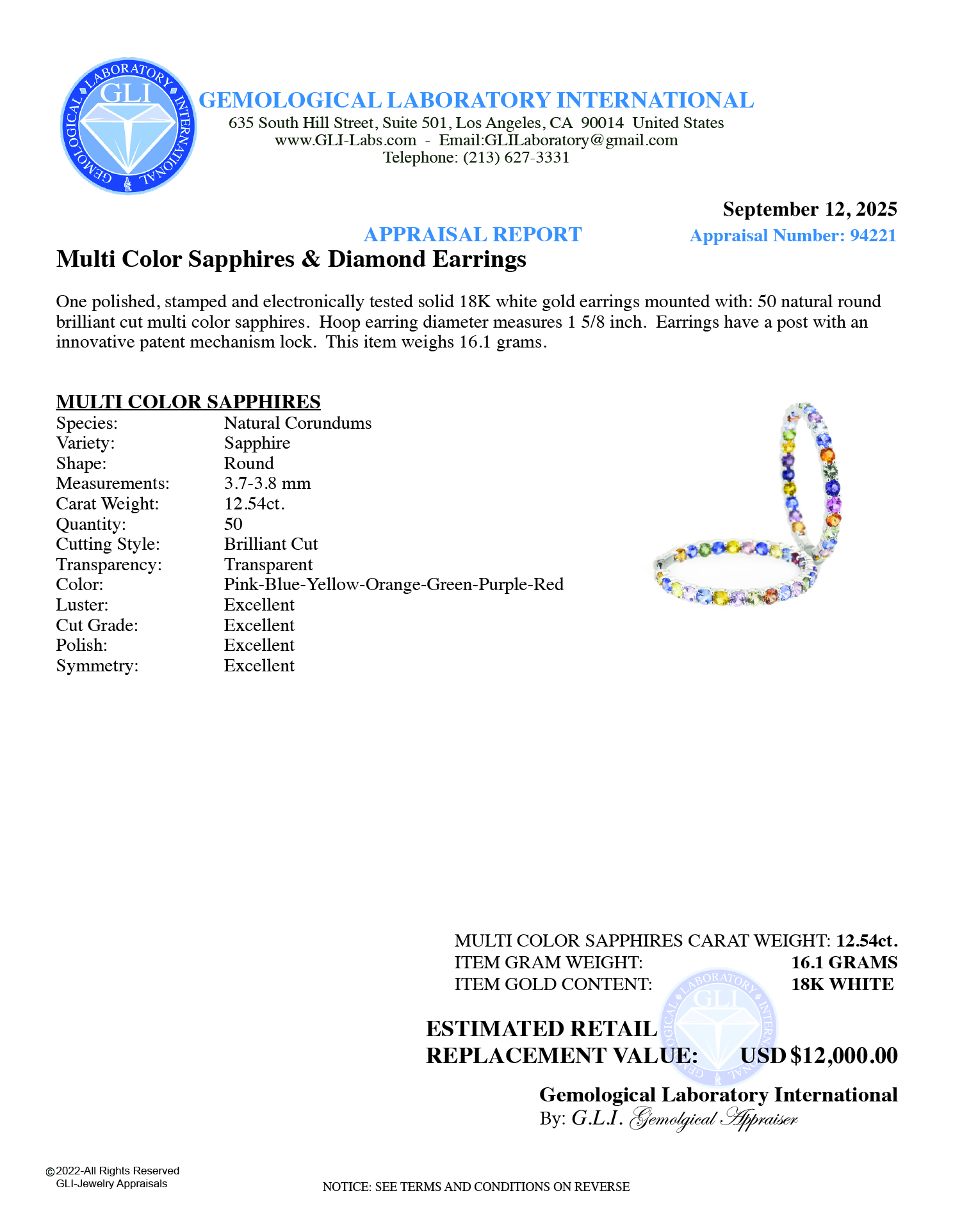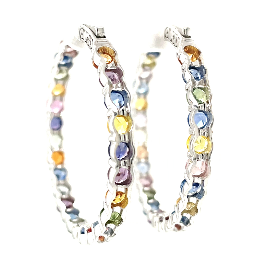 Earrings (50) Loop Design Round Natural Multi Color Sapphires 12.54ct.tw.