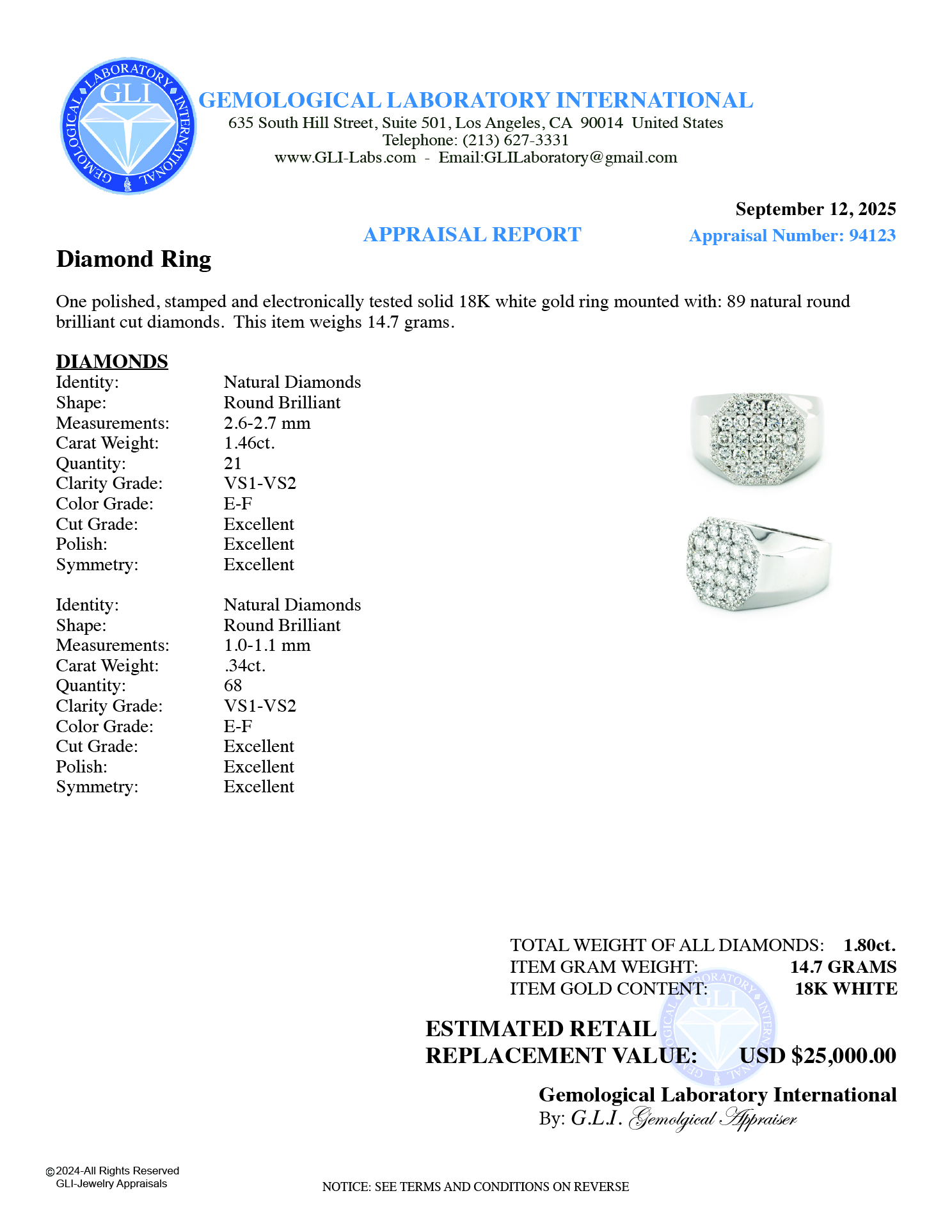 Men’s Ring (89) Round Brilliant Natural Diamonds 1.80ct.tw