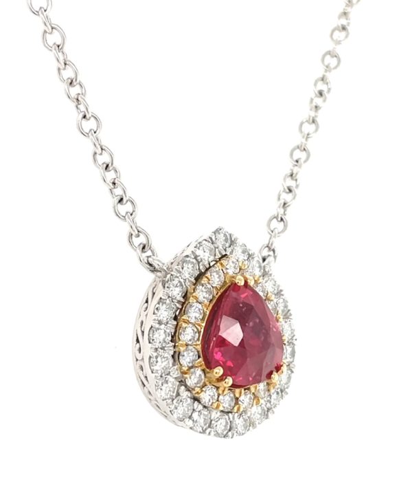 Pendant Center Pear Shape Unheated Ruby 2.87ct (GIA Gemological Report: 5181429252) No Indication of Heating Adjacent (38) Round Brilliant Natural Diamonds 1.31ct.tw