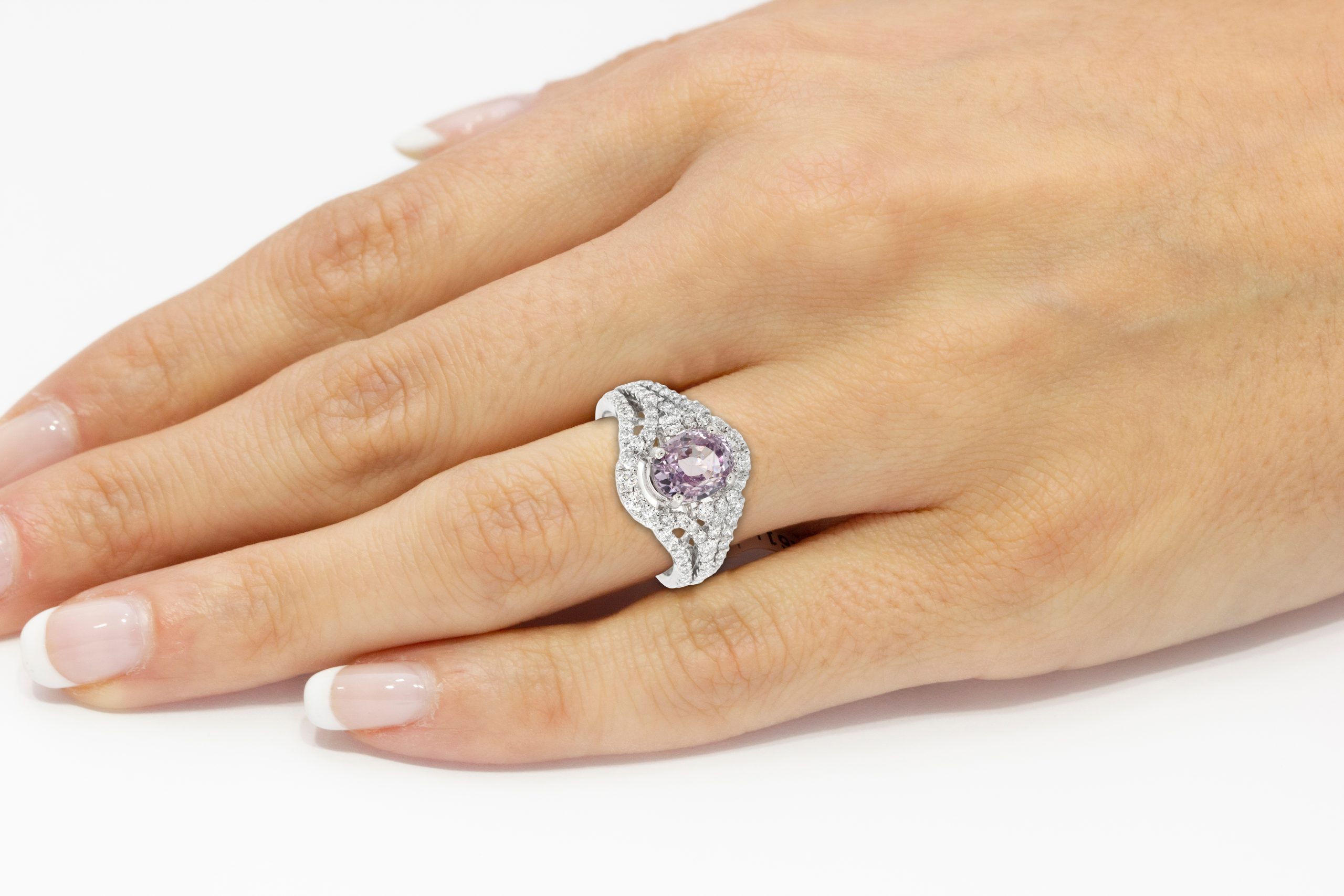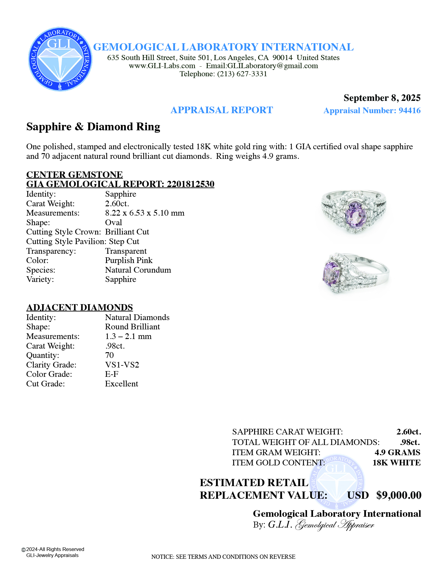 Ring Center Oval Shape Natural Sapphire 2.60ct Color: Pink Purplish (GIA Color Stone Report: 2203812497) No Indication of Heating