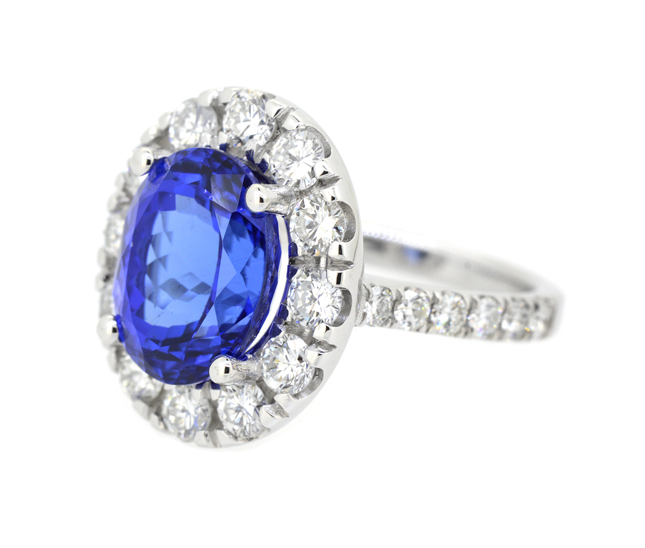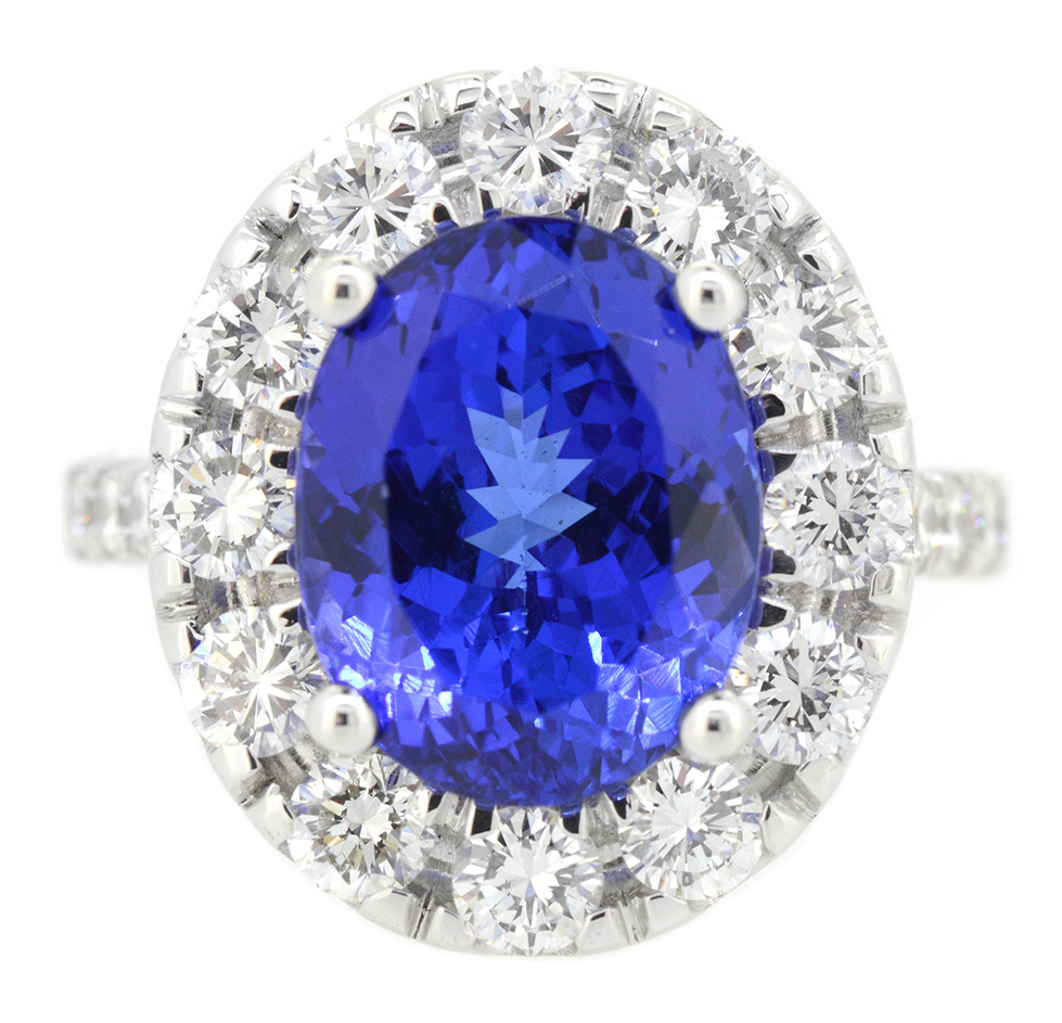 Ring Center Oval Shape Violet Blue Tanzanite 6.24ct Adjacent (24) Round Brilliant Natural Diamonds 1.85ct.tw
