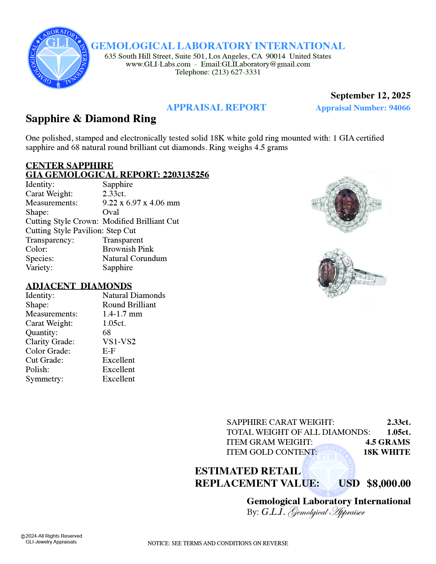 Ring Center Oval Shape Sapphire 2.33ct. Color: Brownish-Pink (GIA Gemological Report: 2203135256)