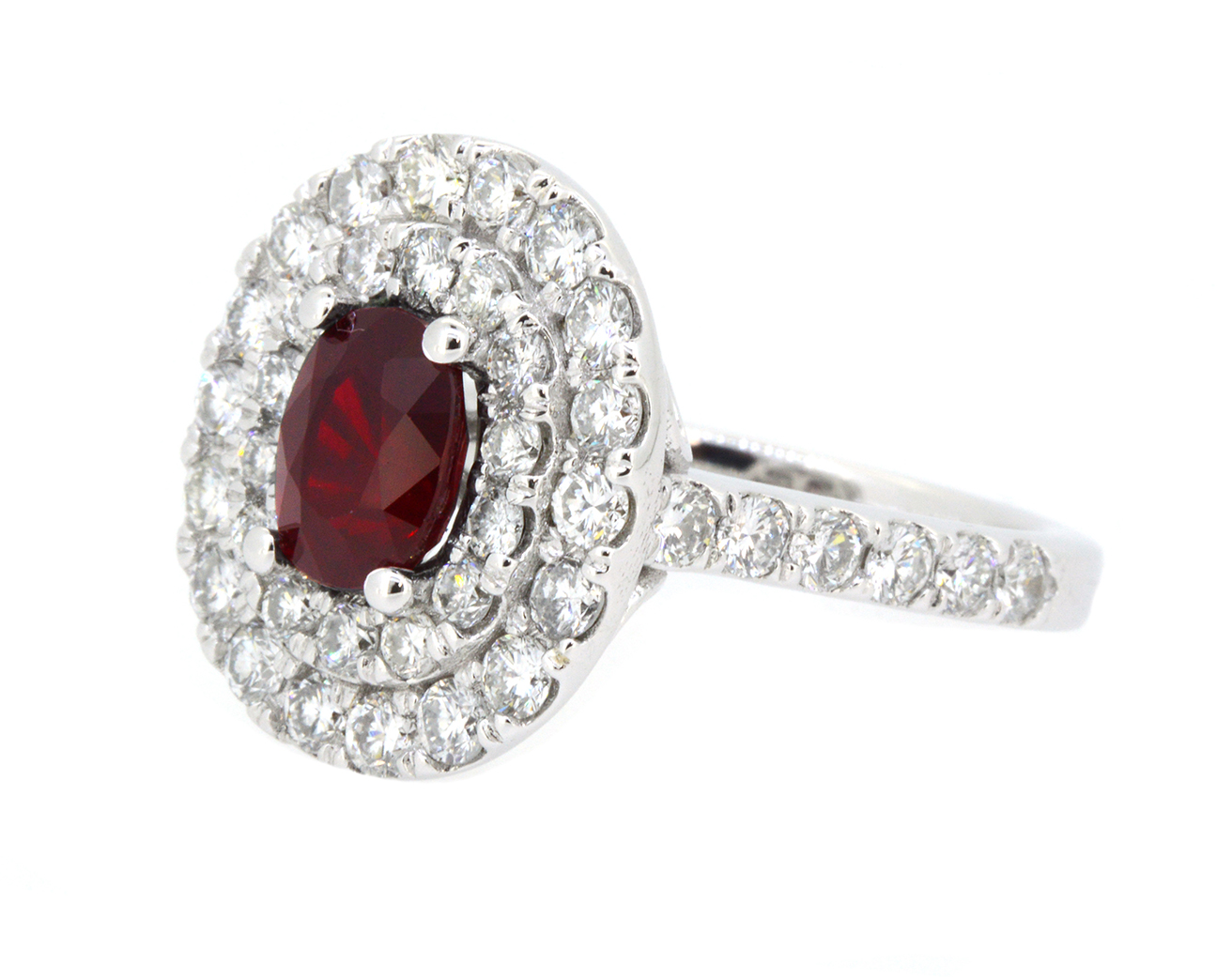 Ring Center Oval Shape Unheated Ruby 1.59ct (GIA Gemological Report: 2185468961) No Indication of Heating