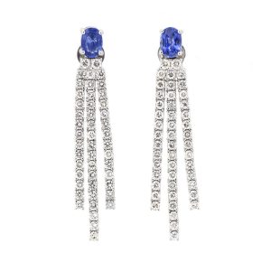 LOT 1021 – EARRINGS (2) OVAL SHAPE BLUE SAPPHIRES 1.94CT.TW. DIAMONDS 3.57CT.TW. 18K