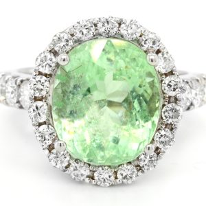 LOT 1003 – RING CENTER GREEN TOURMALINE PARIBA 6.40ct. (GIA CERTIFIED) DIAMONDS 1.06ct.tw. 18K – 6.8 GRAMS